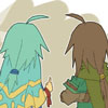 Description: Blair from Pokemon looking to the bottom left with an affectionate smile